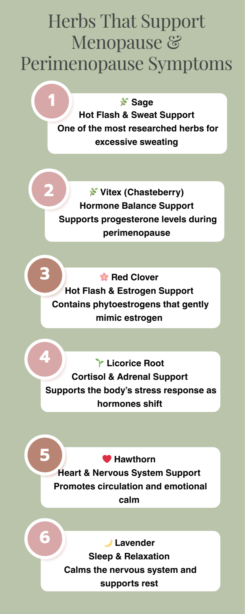 The Menopause Tea is formulated specifically to support women during perimenopause and menopause. Instead of focusing on just one symptom, it combines herbs traditionally used for: